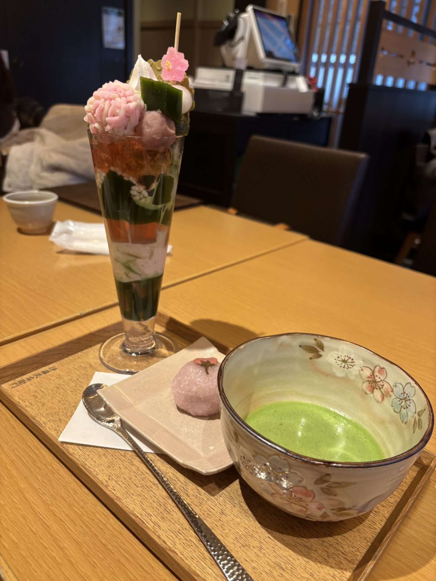 (おかんは、抹茶に小さな団子のみ)